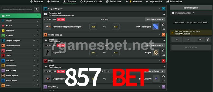 O 857 Bet oferece uma grande seleção de opções de apostas em e-sports com probabilidades competitivas